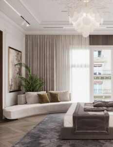 • Cortina é feita uma costura que franzi todo o tecido